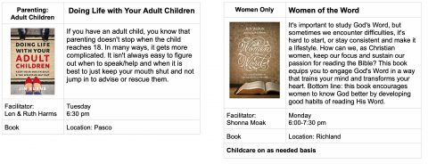 After signing up, your group facilitator will contact you with more information. If you have any questions, please contact richlandconnect@gmail.com.